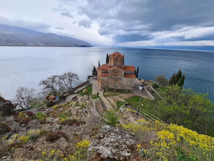 Der Ohridsee mit der Kirche des Johann von Kaneo ist ein Weltnatur- und Weltkulturerbe – und gehört für mich zu den Highlights des Landes. Dabei handelt es sich um einen der ältesten Seen der Welt und den größten See des Landes, den sich Nordmazedonien mit Albanien teilt. Eigentlich sollte es in Strömen regnen, doch wir kamen noch vor dem großen Wolkenbruch am Rande des Ohrid-Sees im Süden von Mazedonien an. Absolut faszinierend!